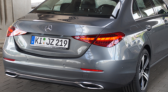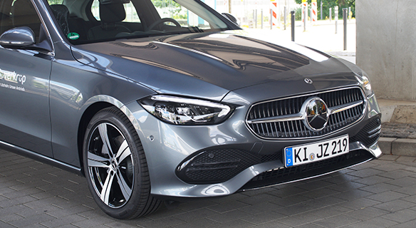 Mercedes-Benz C 300 de | Energieverbrauch gewichtet, kombiniert: 20,3‒18,1 kWh/100 km plus 0,6‒0,4 l/100 km | Kraftstoffverbrauch kombiniert bei entladener Batterie: 5,8‒5,2 l/100 km | CO₂-Emissionen gewichtet, kombiniert: 15‒11 g/km | CO₂-Klasse gewichtet, kombiniert: B | CO₂-Klasse bei entladener Batterie: E