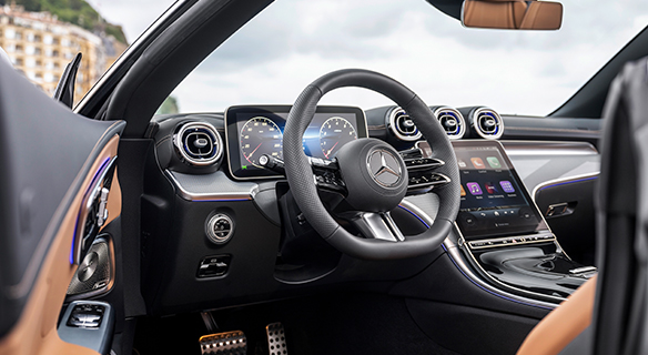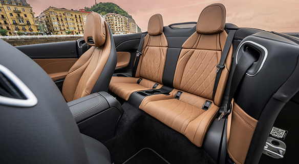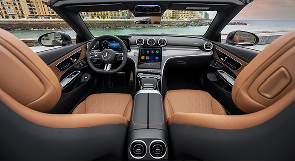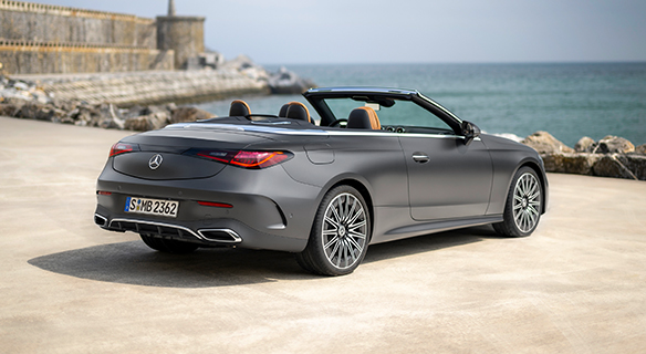 Das neue CLE Cabriolet vereint die sportlichen Designmerkmale des CLE Coupés, darunter die kraftvolle Frontpartie mit einer tief geneigten Motorhaube und markanten Powerdomes, mit einem eleganten Stoff-Akustikverdeck. Es ist für all jene gedacht, die herausragendes Design, dynamischen Fahrspaß und die Möglichkeit schätzen, in Sekundenschnelle ein Gefühl von Freiheit zu erleben. Im Innenraum präsentiert sich das neue CLE Cabriolet mit einer Vielzahl luxuriöser Highlights, die ein Gesamtbild von höchster Qualität erzeugen. Beeindruckende Details wie die Instrumententafel und Bordkanten in Ledernachbildung ARTICO in Nappaoptik, die komfortablen Multikontursitze sowie das herausragende Klangerlebnis des Burmester® 3D-Surround-Soundsystems tragen zu einem einzigartigen Fahrgefühl bei, egal ob das Verdeck geöffnet oder geschlossen ist.