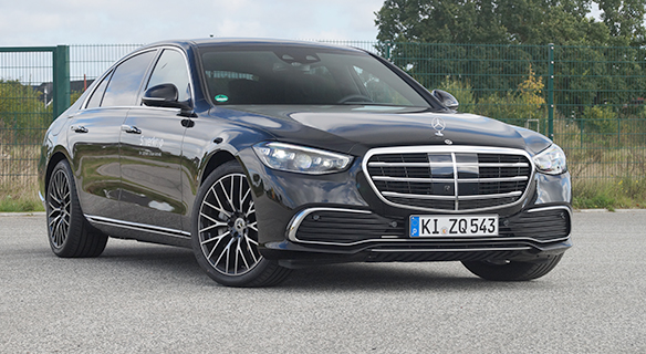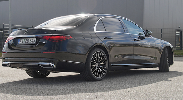 Mercedes-Benz S 450 e Limousine | Energieverbrauch gewichtet, kombiniert: 23,4‒20,5 kWh/100 km plus 0,9‒0,6 l/100 km | Kraftstoffverbrauch kombiniert bei entladener Batterie: 8,6‒7,6 l/100 km | CO₂-Emissionen gewichtet, kombiniert: 19‒13 g/km | CO₂-Klasse gewichtet, kombiniert: B | CO₂-Klassen bei entladener Batterie: G-F