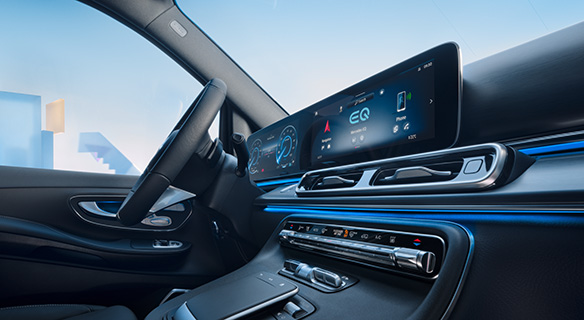 Als nächstes Mitglied der EQ-Familie kombiniert der neue EQV lokal emissionsfreie Mobilität mit überzeugenden Fahrleistungen, hoher Funktionalität und ästhetischem Design. Zu den technischen Highlights gehören eine Reichweite von bis zu 418 Kilometern und das schnelle Nachladen der Hochvolt-Batterie von 10 auf 80 Prozent in weniger als einer Stunde. Durch die Unterbringung der Batterie im Unterboden steht das volle Raumangebot zur Verfügung. Somit bietet der neue EQV höchsten Komfort und beispiellose Flexibilität als Familienfahrzeug oder als repräsentatives Business-Shuttle.